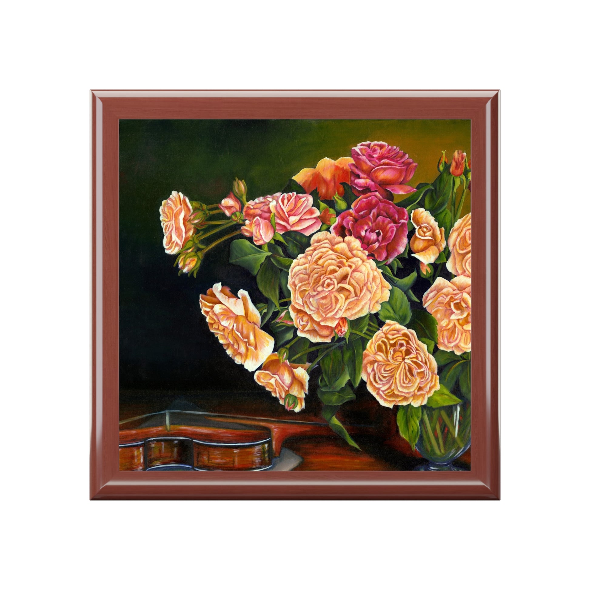 .: 6" x 6" (15cm x 15cm) decorated glossy sublimation ceramic tile fitted on top of the lid