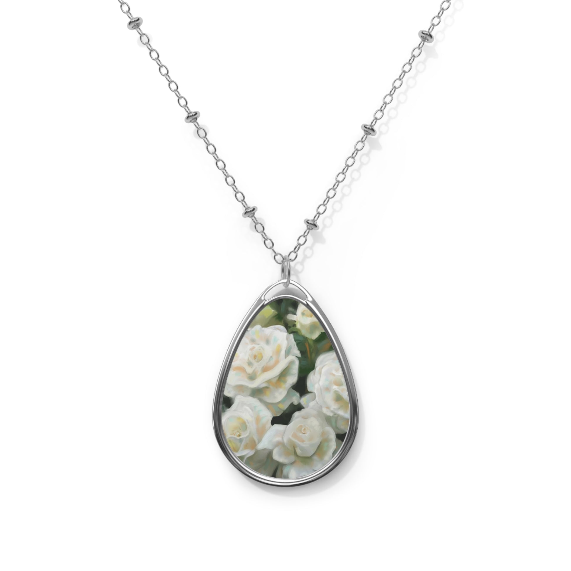 Oval Photo Pendant Necklace — Custom Floral Teardrop Locket