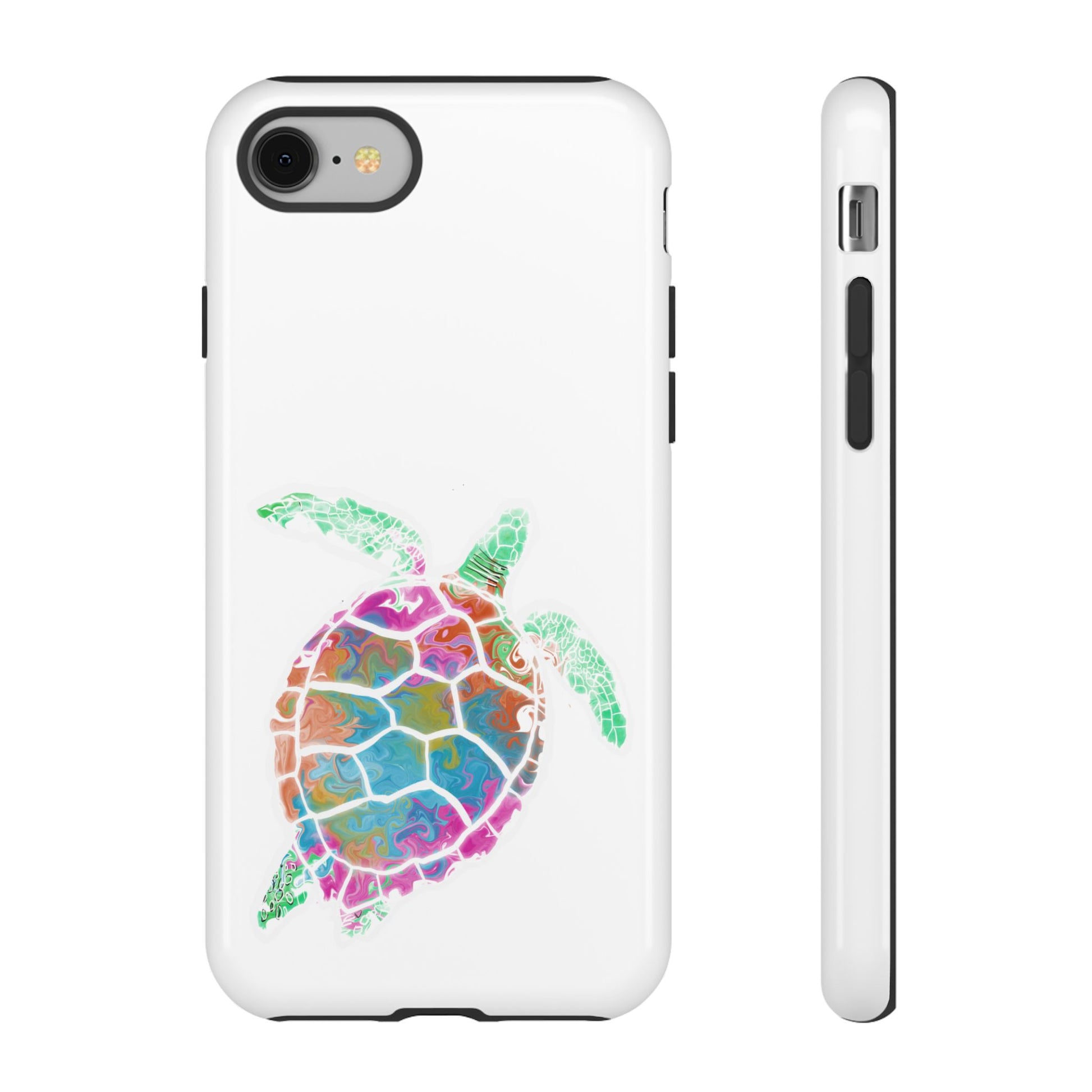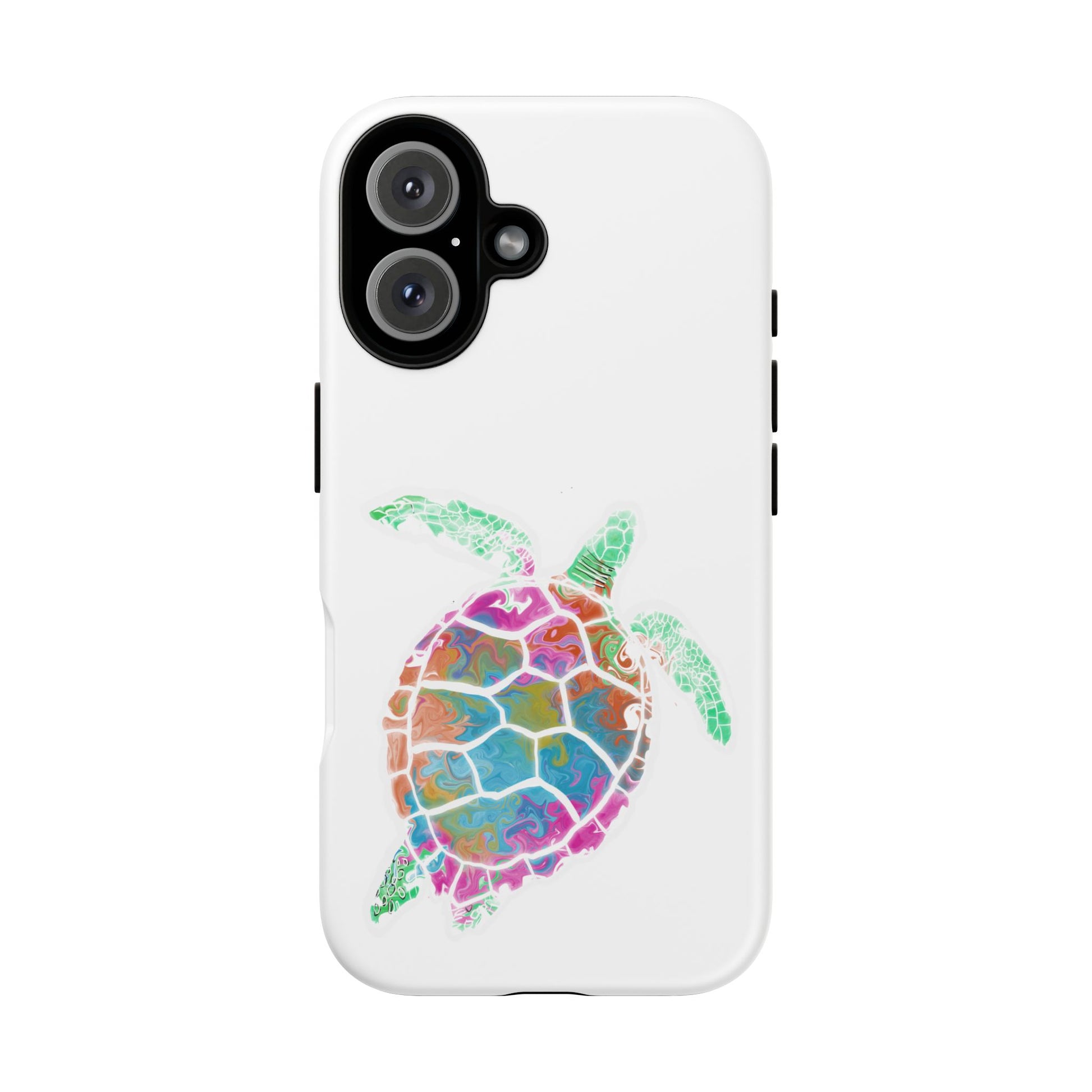 This slim, dual-layer phone case wraps your device in bright, ocean-inspired energy. A watercolor-style sea turtle drifts across a glossy white background, the rainbow hues popping through a full 3D wrap print that resists fading and outdoor wear. The hard polycarbonate shell and TPU silicone liner work together to absorb shocks and protect against accidental drops while keeping ports clear and wireless charging available. Lightweight and thoughtful, it brings a touch of coastal color to everyday carry and holds up to active use when you’re out on the sand, commuting, or simply enjoying sunlit moments.